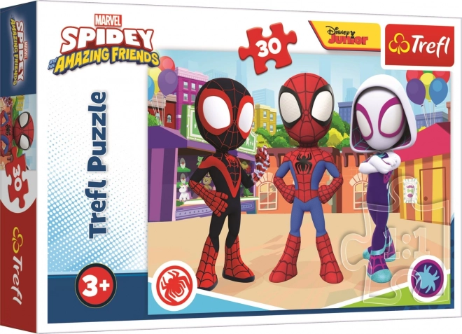 Puzzle pour enfants avec le motif SPIDEY et ses amis, comprenant 30 pièces et formant une image de 20 × 27 cm une fois assemblée. Fabriqué à partir de matériaux de qualité et écologiques avec papier calandré pour réduire les reflets et faciliter l’assemblage. Idéal pour les petits fans de Marvel.