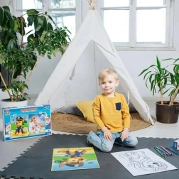 Grâce aux pièces robustes et aux illustrations nettes, les enfants assemblent facilement l’image puis peuvent poursuivre avec le coloriage. Le jeu de puzzle stimule la pensée logique, la concentration et la perception visuelle, tandis que les coloriages développent créativité et imagination.