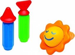 Avec la canne à pêche fournie et les différentes formes des pièces, les enfants peuvent créer leurs propres mondes marins.