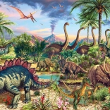 Une représentation dynamique de dinosaures dans un magnifique cadre naturel offre une expérience de puzzle fascinante.