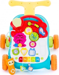 Le panneau interactif joue des mélodies et des sons, incite à appuyer sur les boutons et à tourner les roues. Le plateau de jeu et le téléphone mobile amovibles peuvent être utilisés séparément, à la maison comme en voyage. La poignée se règle facilement en hauteur pour une poussée confortable et sécurisée pour les enfants.