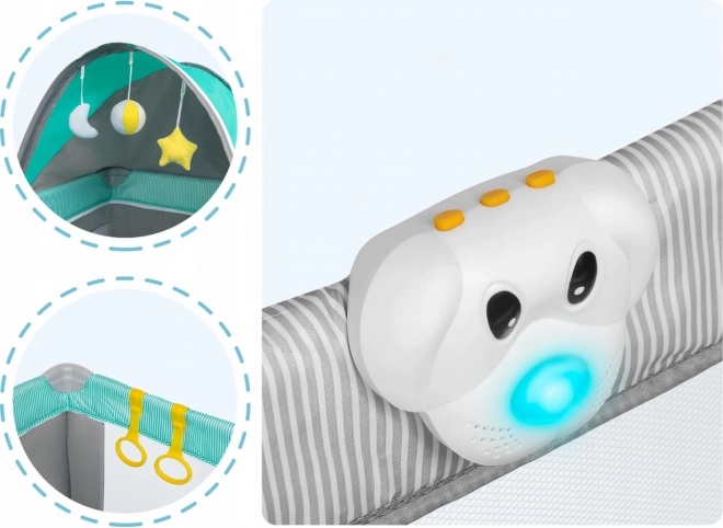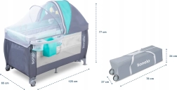 Le lit parapluie LIONELO Sven Plus est un choix idéal pour les vacances comme pour les visites en famille. Grâce à ses pieds robustes et à ses roulettes avec frein, vous le déplacez facilement tout en garantissant la stabilité. Les deux hauteurs de matelas permettent d’installer confortablement un nourrisson comme un enfant plus grand, et l’accès latéral zippé assure une entrée facile et ludique.