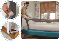 Installation simple sous le matelas avec possibilité de fixation vissée. Les sangles SecureBelt offrent une contre-traction et maintiennent la barrière en place.