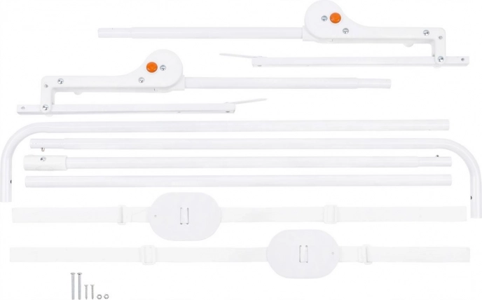 L’installation est intuitive : les bras se glissent entre le sommier et le matelas ; pour une fixation permanente, utilisez les vis et supports fournis. Le système Standsafe empêche tout rabattement involontaire et les sangles de sécurité SecureBelt assurent une contre-traction lorsque l’enfant appuie sur la maille. Le cadre en aluminium léger mais résistant supporte de fortes charges sans se déformer.