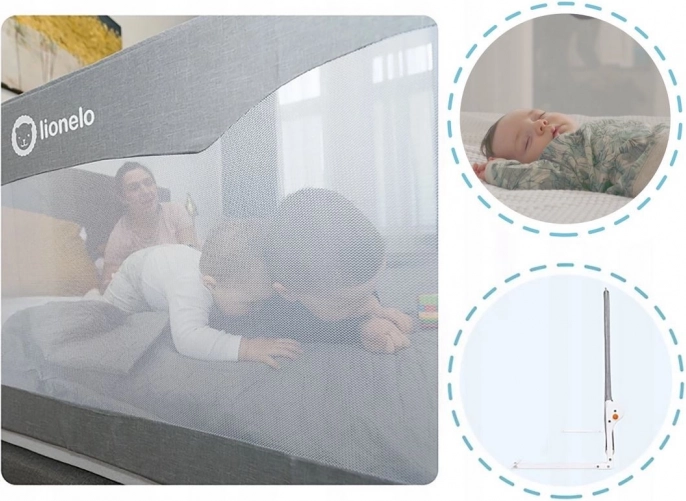 La barrière HANNA est l’une des plus hautes du marché, convenant ainsi même aux matelas très épais. La maille respirante est douce pour la peau de l’enfant, garantit une circulation d’air optimale et permet aux parents de garder l’enfant constamment en vue. Le mécanisme de pivotement à 180° permet de rabattre rapidement la barrière contre le cadre du lit — elle reste discrète et prête pour la prochaine utilisation.