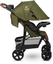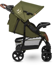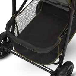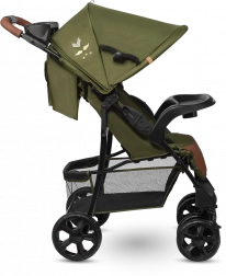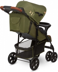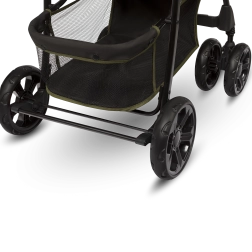Grâce aux roues en mousse EVA durable, la poussette est fiable sur différents revêtements. La suspension souple des roues avant absorbe les chocs et la possibilité de verrouillage pour la conduite en ligne droite augmente la stabilité sur le pavé. La poussette se plie facilement en format compact pour le transport ou le rangement dans le coffre.