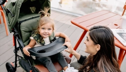 Harnais 5 points avec protections rembourrées, arceau de sécurité avec plateau goûter et porte-boisson. La poussette a été testée en laboratoire SGS et répond à des exigences strictes.