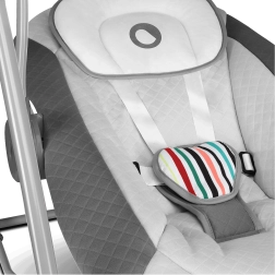 La sécurité est assurée par un cadre en acier robuste et un harnais 5 points, tandis que le confort est garanti par un rembourrage doux et amovible avec éléments lavables à la main et un coussinet pour un bon soutien de la tête. Un minuteur pratique, cinq niveaux de balancement et l’alimentation via USB ou piles offrent un maximum de flexibilité dans chaque foyer.