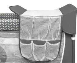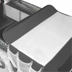 Sécurité et confort – LockGuard empêche le pliage accidentel de la structure, les bords arrondis protègent contre les blessures et la maille aérée sur les côtés longs assure la circulation de l’air et le contact visuel. Table à langer avec rebords surélevés et deux poches pour garder les indispensables à portée de main. Arche de jeux avec jouets pour stimuler la motricité et les sens de l’enfant.