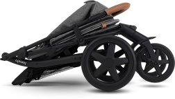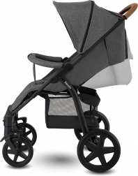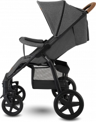 La sécurité avant tout – la poussette est équipée d’un harnais 5 points avec coussinets doux, d’une barre d’appui amovible et d’éléments réfléchissants pour une meilleure visibilité au crépuscule. Conforme à la norme EN 1888 vérifiée par le laboratoire indépendant Intertek. Le frein central assure une immobilisation stable.