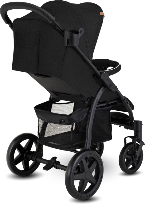 Les roues en mousse EVA sans entretien sont increvables; les roues avant pivotent à 360° avec option de blocage pour rouler droit sur les surfaces irrégulières. La suspension souple absorbe les chocs et le frein de parking fiable maintient la poussette en place. La sécurité est assurée par le harnais 5 points et l’arceau amovible; les détails réfléchissants améliorent la visibilité. Le panier pratique, la poignée ergonomique en cuir écologique et les accessoires inclus font d’Annet Plus un choix idéal pour les familles actives.