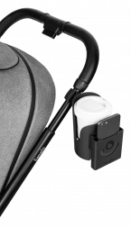 - Le support est équipé d'un système de fixation universel à 360° et d'une bande velcro stable, que vous fixez sur n'importe quelle poignée de poussette sous n'importe quel angle.