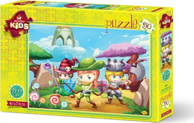 Découvrez un divertissement pour les plus petits avec un puzzle de 50 pièces de qualité, qui développe la pensée logique, la patience et la motricité fine. L’illustration « Trois petits héros » ravira les enfants comme les parents et, une fois assemblée, mesure environ 48 × 34 cm.
