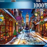 Plongez dans l’atmosphère de Noël à Londres avec ce magnifique puzzle. L’illustration montre une rue de Noël animée au style victorien, décorée d’arbres et de lumières, avec l’imposant Big Ben en arrière-plan, apportant joie et sérénité des fêtes.