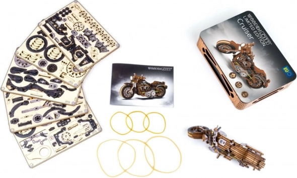 Le puzzle 3D en bois WOODEN CITY Cruiser V-Twin offre une expérience authentique de construction de modèle mécanique sans utiliser de colle ou d'outils. Ce modèle est fabriqué en contreplaqué de bouleau écologique et contient des détails fonctionnels d'une véritable moto. Le modèle de moto offre: