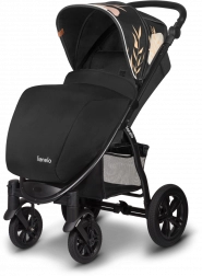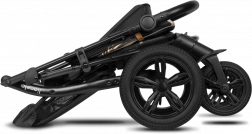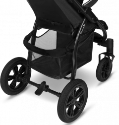 De grandes roues sans entretien avec une bande de roulement résistante et une suspension intégrale absorbent aisément pavés et irrégularités. Pour un contrôle sûr, on trouve le blocage des roues avant et un frein central au pied. Grâce au réglage de la poignée sur 9 niveaux, vous adaptez la poussette à votre taille. La sécurité est assurée par des harnais 5 points avec protections rembourrées et des éléments réfléchissants sur la capote, l’arceau et le repose-pieds. La poussette est conforme à la norme EN 1888.