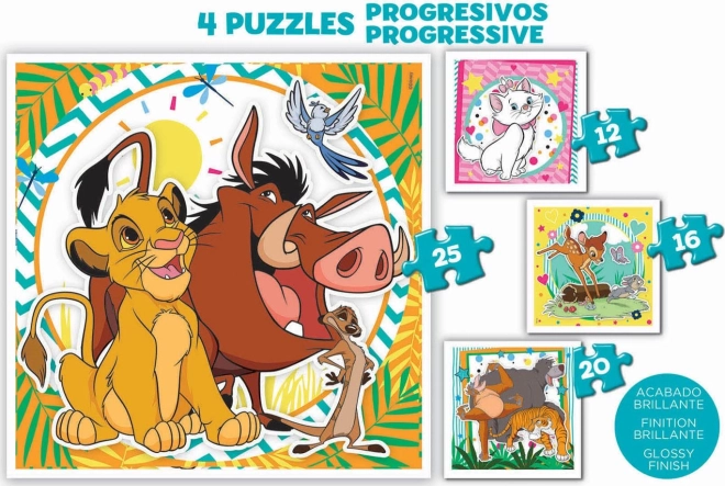 Découvrez un ensemble ludique de puzzles mettant en scène les animaux préférés des contes Disney. Grâce à une difficulté croissante, les enfants développent leur motricité fine, leur patience et leur logique. Chaque image comporte un nombre de pièces différent, permettant aux plus petits de progresser du plus simple au plus complexe.