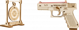 Le kit est fabriqué en contreplaqué de bouleau écologique et séduit par ses éléments réalistes, tels que la sécurité, le chargeur et la possibilité de tirer jusqu’à cinq élastiques à la suite. Idéal pour les passionnés de puzzles 3D, de technologie et comme cadeau original.