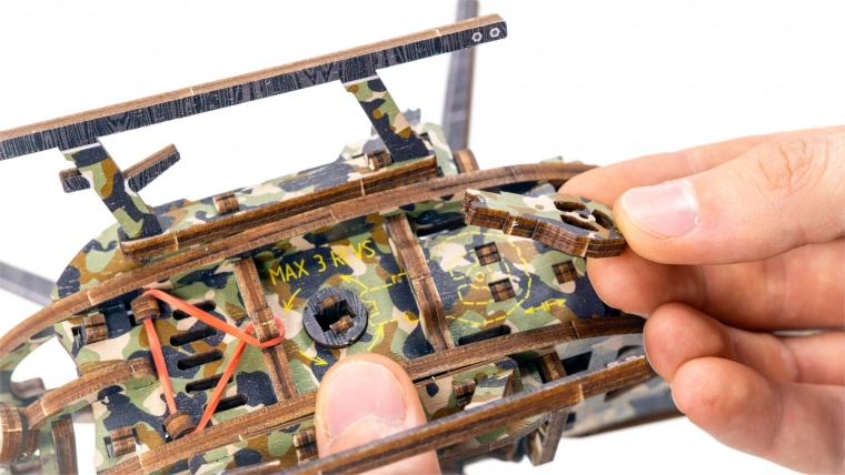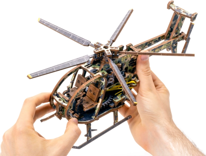 Une maquette mécanique en bois d’un hélicoptère militaire vous attend ! Grâce au design unique et aux détails surprenants de ce modèle, vous passerez des moments pleins de divertissement et d’émotions. Caractéristiques du modèle : - éléments colorés marquants grâce à une impression UV de haute précision, - la boîte en bois sert de socle, - édition de collection. Le puzzle 3D WOODEN CITY Helicopter sera le meilleur cadeau pour tout amateur d’aviation.
