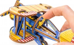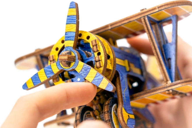 L’édition limitée du puzzle 3D WOODEN CITY Biplan allie le plaisir du montage à de vraies fonctions mécaniques. Grâce au moteur à élastique avec hélice à remonter et au volant d’inertie, le modèle roule réellement une fois assemblé. Les éléments colorés obtenus par une impression UV haute précision soulignent le style rétro et le caractère de collection du modèle.