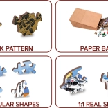 Les puzzles en bois WOODEN CITY découpés au laser, avec leurs pièces spécialement façonnées, sont incroyablement amusants. Une partie des pièces est réalisée sous forme d’animaux, de bâtiments ou d’objets, dont l’effet final est renforcé par des détails soulignés au laser. Ces pièces peuvent tenir seules comme de petites figurines. Assembler un puzzle avec des pièces de formes variées est plus difficile et représente un défi plus important que l’assemblage d’un puzzle classique. Le puzzle est en plus recto-verso : vous pouvez l’assembler selon l’image (face avant) ou selon la forme (face arrière avec motif). La marque WOODEN CITY, en plus de son concept de puzzle unique, n’oublie pas l’écologie : vous ne trouverez donc aucun emballage plastique sur ces produits. - avec des pièces aux formes uniques représentant des bâtiments, objets ou animaux célèbres selon le thème du motif - difficulté plus élevée avec un plus petit nombre de pièces – assembler un puzzle aux pièces de formes variées est plus exigeant - puzzle recto-verso 2-en-1 – d’un côté l’image, de l’autre un motif répétitif pour un assemblage guidé par la forme - bords lisses sans échardes grâce à une découpe laser de précision - fabriqué en panneau de fibres HDF robuste de 3 à 4 mm d’épaisseur - modèle séparé inclus à l’intérieur de l’emballage pour l’assemblage - EKO Friendly 100 % sans emballages plastiques – puzzle dans un sachet en papier à l’intérieur d’une boîte en papier - cadeau approprié pour toute occasion Taille : L Nombre total de pièces : 505 Pièces de forme unique : 50 Dimensions du puzzle assemblé : env. 37,5 × 25,4 cm