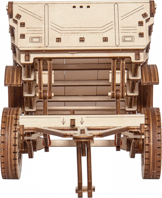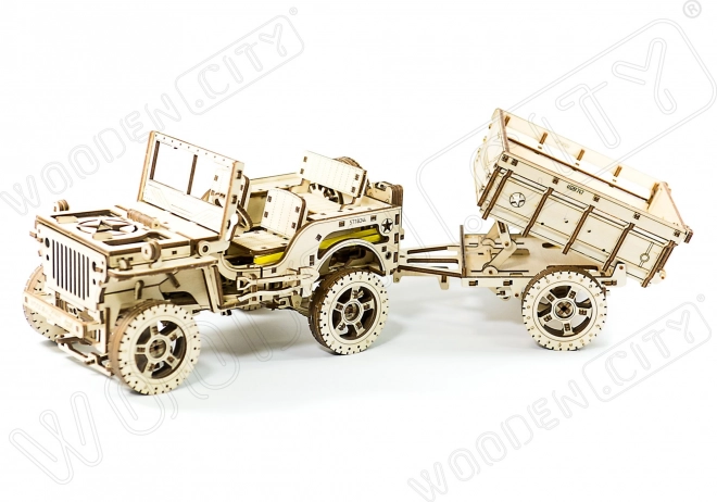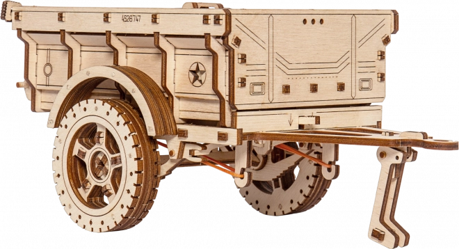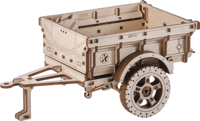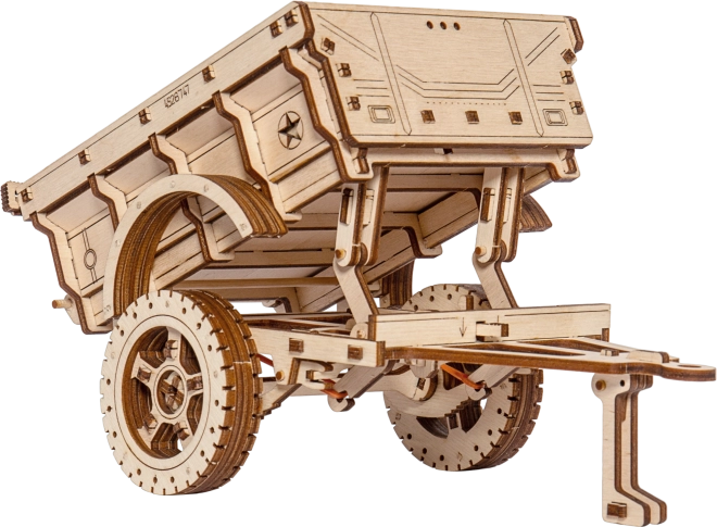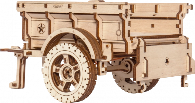 La remorque militaire WOODEN CITY est une maquette mécanique en bois au style soigné qui ravira tous les passionnés de technique et de modélisme. Grâce à la découpe laser précise dans du contreplaqué de bouleau, les pièces s’emboîtent parfaitement – le montage se fait sans colle et reste propre, rapide et amusant. Le résultat est un modèle décoratif impressionnant avec des éléments fonctionnels, qui complétera parfaitement, par exemple, une voiture en bois de type Jeep 4x4.