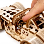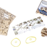 Il s’agit d’un modèle mécanique qui s’assemble sans colle ni outils, offrant l’avantage d’une simplicité d’utilisation et d’une approche écologique grâce au contreplaqué de bouleau. Un manuel illustré est inclus pour faciliter l’assemblage. Nécessite un minimum d’accessoires, tels qu’un cutter à lame sécable et de la cire pour un fonctionnement optimal.