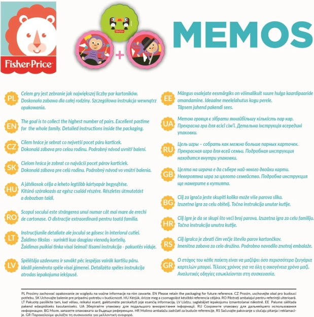 Pexeso Animaux Fisher-Price est un choix idéal pour le divertissement et le développement des enfants. Avec des motifs d'animaux, les enfants s'amusent et exercent également leurs capacités de mémoire. Le jeu est conçu pour répondre aux besoins des plus jeunes joueurs.