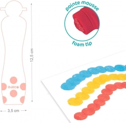 Les peintures moussantes DJECO avec leur applicateur éponge pratique sont un choix idéal pour les premières activités créatives. Les enfants appuient simplement pour faire des points, des traits et des motifs – sans pinceaux et sans bazar. Les flacons ergonomiques conviennent aux petites mains et favorisent une prise en main naturelle.