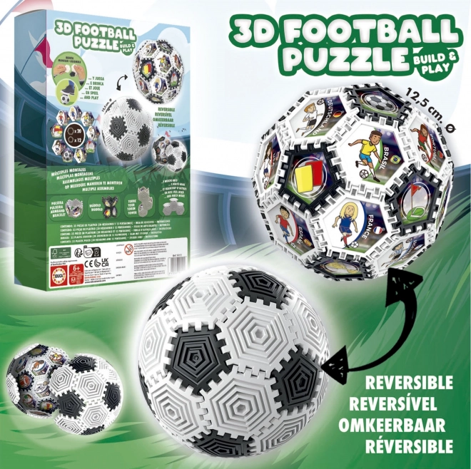 Construisez et jouez avec l'original puzzle 3D double face en forme de ballon de football. Une fois assemblé, vous obtiendrez un ballon solide et fonctionnel, que vous pouvez décorer avec des autocollants de football et utiliser pour jouer.