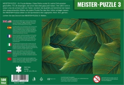Les Meister-Puzzle sont conçus pour ceux qui maîtrisent depuis longtemps les puzzles « classiques ». Le motif feuilles joue avec des nuances subtiles et la répétition des formes, de sorte que chaque pièce requiert une observation minutieuse des détails et de la patience.