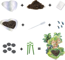 La combinaison de la construction 3D et de la culture réelle maintient l’enthousiasme des enfants du premier élément jusqu’aux premières feuilles. Le pot en forme de cœur deviendra le centre de votre petit monde vert.