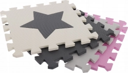 Un tapis en mousse stylé avec des motifs de cœurs et d’étoiles en rose et gris crée, pour les enfants dès 3 ans, un espace de jeu sûr et confortable. Les pièces s’emboîtent facilement ; le tapis est souple, lavable, atténue le bruit et isole du froid. Des pièces de bord et d’angle sont incluses pour une finition nette et propre.