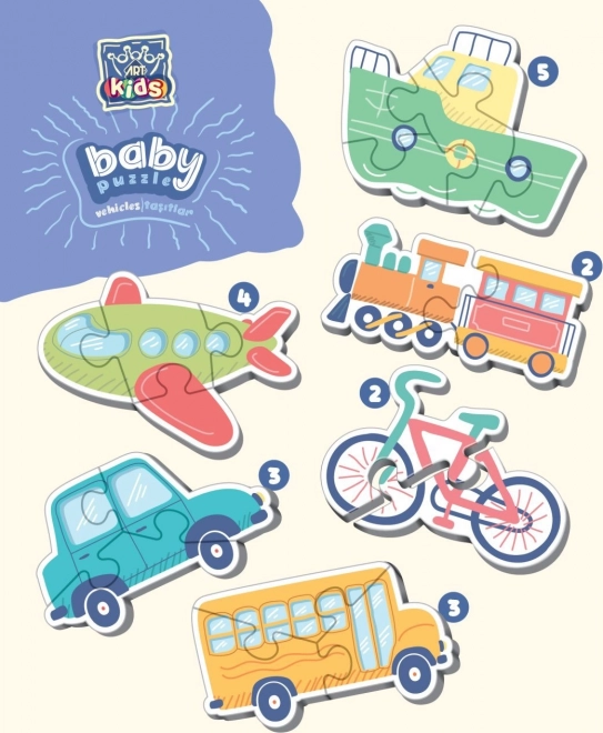 Le set de Puzzle pour bébé Transport par ART est idéal pour développer les capacités cognitives et la motricité fine des enfants. Grâce à sa surface facile à entretenir et son carton de 2,5 mm d'épaisseur, ce jouet offre une activité sûre et amusante.