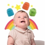 Les briques colorées tiennent agréablement en main, se superposent facilement et favorisent la coordination œil–main, la concentration et les premières associations logiques.