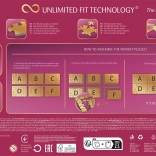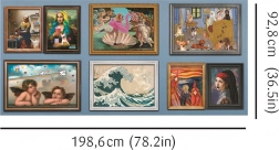 La dimension totale du puzzle dans la configuration proposée par l’affiche est de 1985,6 x 928 mm*. Grâce à la technologie UFT, les panneaux/puzzles peuvent être reliés librement, ce qui définit différentes dimensions de la composition finale.