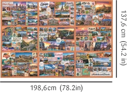 9 puzzles (chacun de 1500 pièces) peuvent être assemblés pour former une image gigantesque selon le poster ou créer votre propre composition. La dimension totale selon le guide est de 1985,6 x 1376 mm*. Grâce à la technologie UFT, les pièces peuvent être assemblées de différentes manières, modifiant ainsi les dimensions de l'image finale.