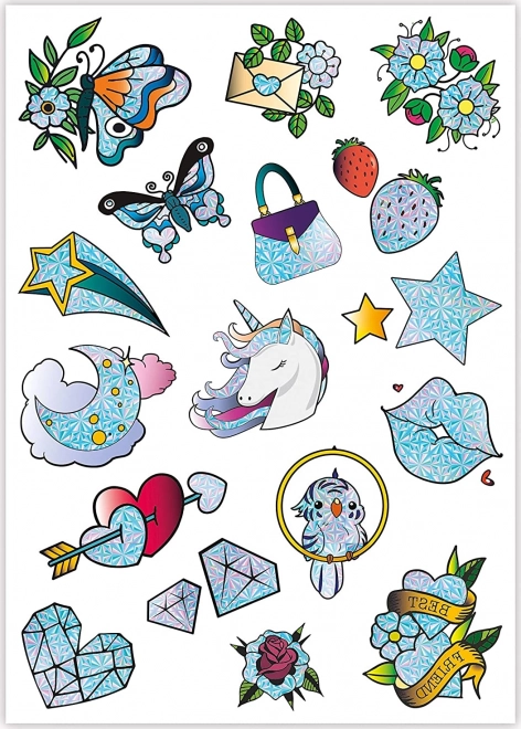 Le kit Crazy Chic Tatouages Scintillants comprend un large éventail de designs, dont des licornes, des papillons et bien d’autres motifs. Les tatouages sont faciles à appliquer et testés dermatologiquement.
