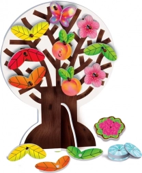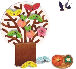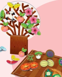 Des pièces colorées et amovibles comme des feuilles, des fleurs et des fruits permettent un jeu créatif.