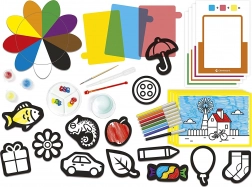 Le coffret comprend des gelées colorées et des gouaches pour des expériences amusantes lors de l’apprentissage des couleurs.