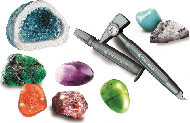 Il contient une brique dans laquelle il faut extraire, à l’aide d’un marteau et d’un burin, des gemmes et des minéraux pour démarrer ou compléter votre collection.