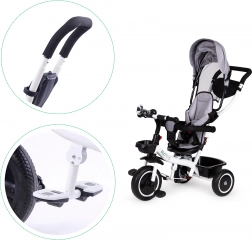 Il est équipé d'une poignée arrière de conduite pour le contrôle parental, qui peut être retirée pour que l'enfant puisse diriger seul. Les repose-pieds pliables sont idéaux pour les petits qui n'atteignent pas encore les pédales, et les barrières de sécurité amovibles garantissent une sécurité maximale.