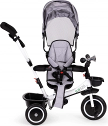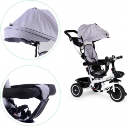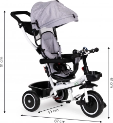 Le tricycle ECOTOYS est le compagnon idéal pour votre enfant dès 6 mois. Le cadre en acier sécurisé avec ceinture de sécurité à 5 points assure la stabilité, tandis que la capote amovible protège du soleil et de la pluie. Le siège rotatif peut être réglé face aux parents ou vers l'avant, offrant flexibilité et assurance lors des promenades.