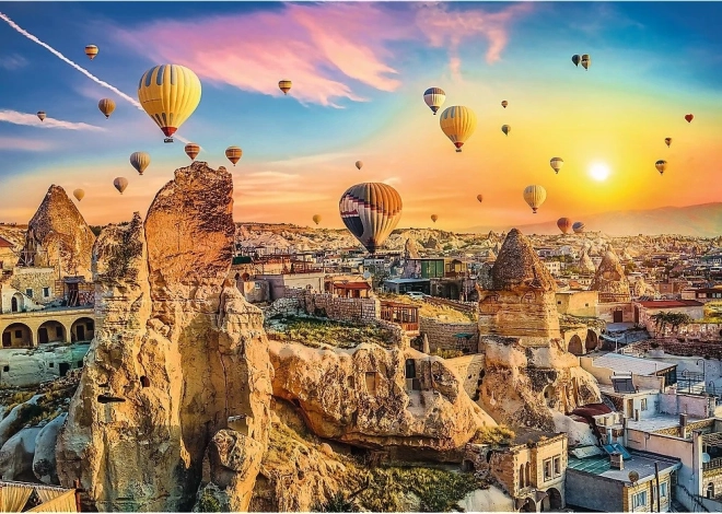 Une scène saisissante de montgolfières au coucher du soleil au-dessus de la Cappadoce apporte une atmosphère unique à votre intérieur et est un vrai plaisir à assembler.