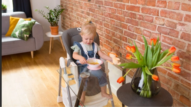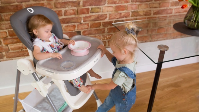 Des sangles 5 points souples et réglables maintiennent l’enfant dans la bonne position sans irriter la peau. La conception est conforme à la norme européenne EN 14988 pour une tranquillité maximale à chaque repas.