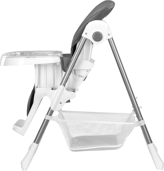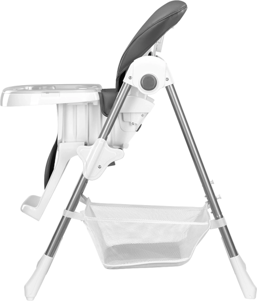 Détails pratiques au quotidien : deux plateaux amovibles (un plus grand pour les repas, un plus petit comme protection de l’assise) compatibles lave‑vaisselle. Le revêtement en éco‑cuir se nettoie avec un chiffon humide. Un grand panier sous l’assise accueille jouets et accessoires, des roulettes facilitent le déplacement et des patins antidérapants améliorent la stabilité.