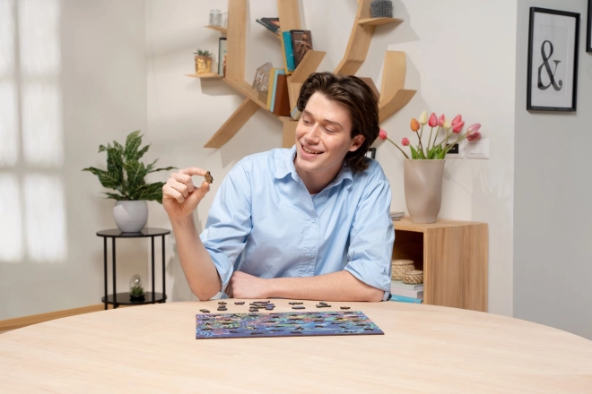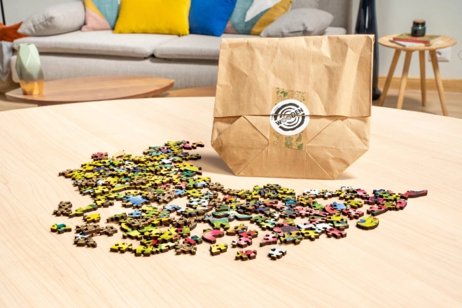 Ce puzzle unique est fabriqué en bois avec une impression couleur de haute qualité. Chaque pièce a une forme totalement unique, offrant une construction passionnante. Vous trouverez des pièces qui rappellent des animaux, fleurs réels et d'autres objets de la vie réelle.