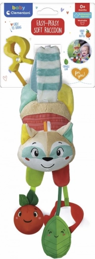 Ce raton laveur tout doux de la marque CLEMENTONI apporte aux enfants un divertissement sécurisé et des stimulations pour découvrir le monde. Les différentes textures, sons et formes sollicitent la vue, l’ouïe et le toucher, et aident à développer la coordination œil–main. Grâce au clip de suspension, vous fixez facilement le jouet à la poussette, au siège auto ou au lit.