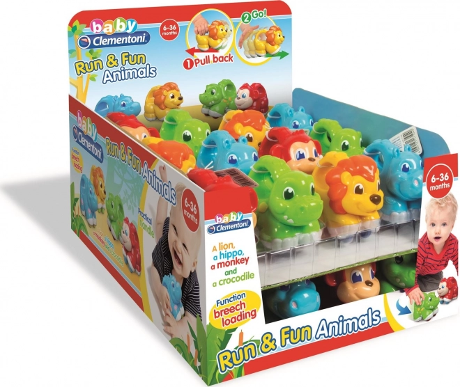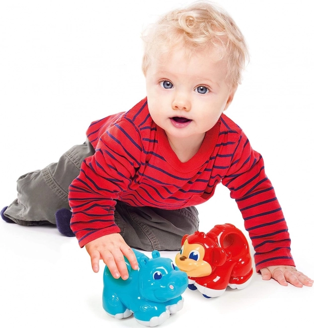 Adorable hippopotame à remonter de CLEMENTONI Baby, un jouet léger et sûr pour les tout-petits. Grâce à sa poignée facile à saisir et à son mécanisme à roues, il favorise les premiers mouvements, développe la motricité fine et aide les enfants à comprendre la relation cause-effet.