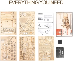 Profitez du plaisir et de la créativité avec le modèle en bois 3D Prime Steam Express. Ce train historique date de 1860 et fait partie de la série ROBOTIME ROKR Model Vehicles Series. Toutes les pièces sont soigneusement découpées au laser dans un contreplaqué de tilleul de 2 mm d'épaisseur. Aucun besoin de colle pour assembler et le modèle comporte des détails réalistes, tels qu'un sifflet à vapeur, des roues à essieu et un tender détachable.